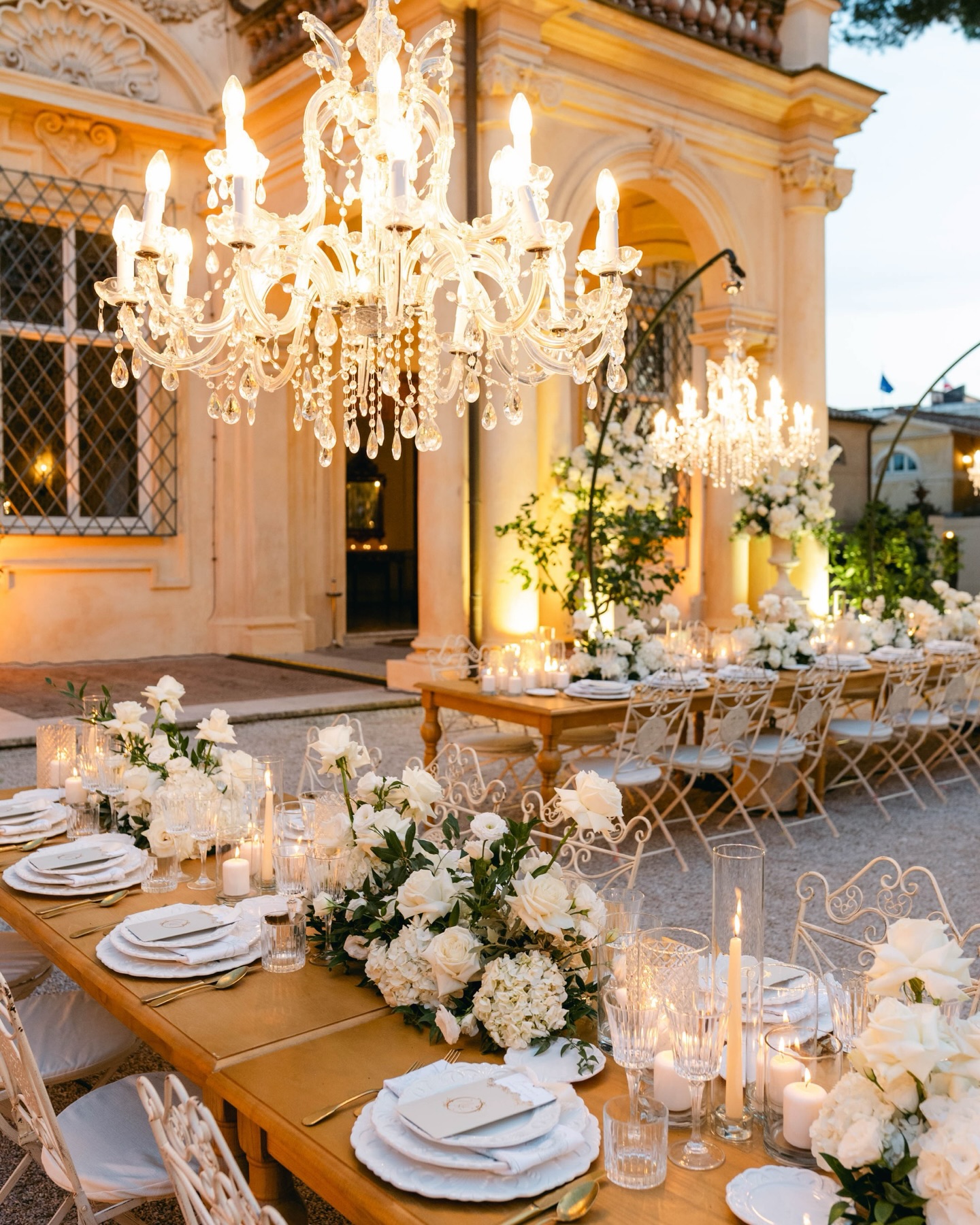 Wedding reception decor at Villa Aurelia, photographed in editorial style